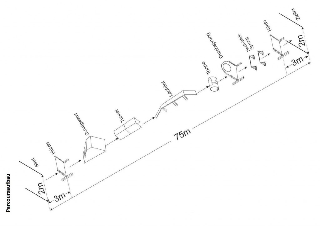 Der Geräteparcours ist in drei Sektionen aufgeteilt;